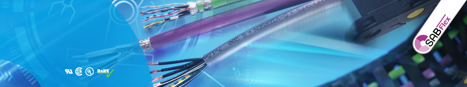 Los cables altamente flexibles de SAB se caracterizan, entre otras cosas, por una esperanza de vida extremadamente alta con el radio de curvatura más pequeño posible. Un producto superior de nuestra serie SABFlex es el tipo SABdynamic 910, que entre otras cosas demuestra el alto estándar de calidad de nuestros cables de cadena de arrastre a través de la aprobación UL, CSA, VDE.